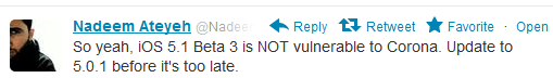 Nadeem is a iPhone developer and also a hacker who used to create Pwnage Bundle for jailbreak community, and you find its twitter account here and here is its tweet regarding this matter.